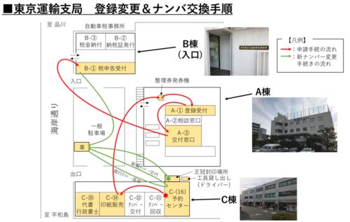 引越に伴う住所変更で、鮫洲の東京運輸支局で品川ナンバーに変更した時の手順を備忘録として残します。 車庫証明の取得、希望ナンバー取得、住所変更申請書の作成と東京運輸支局の手続き内容について記載しています。